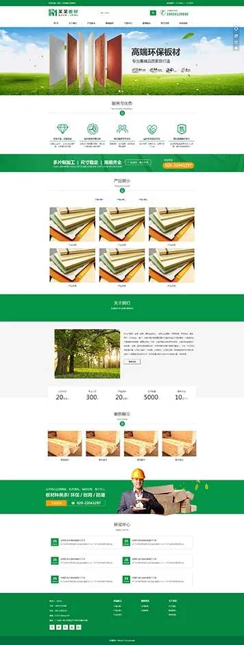 编号h138 通用智能绿色环保板材企业网站模板